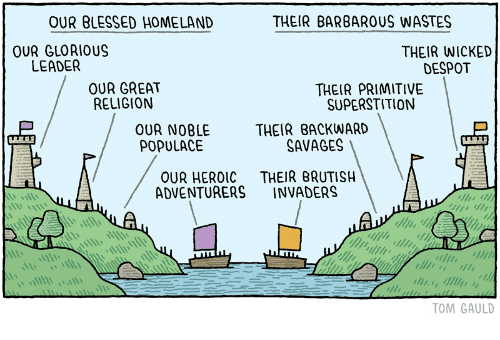 Unsere Steinzeithirne verleiten uns leider auch dazu, Menschen mit anderen Meinungen zu dämonisieren. „Wir sind die Guten, ihr seid die Bösen, und dazwischen steht eine unüberwindbare Mauer.“ Wir legen Meinungen, die wir für schädlich halten, als Charakterschwäche aus. Der Gegner muss bei emotional-moralisch stark aufgeladenen Themen so übel wie möglich dargestellt werden, um die Abgrenzung zwischen Gut und Böse zu betonen und die Bekämpfung des Bösen zu rationalisieren. „Wer mir nicht zustimmt und mich kritisiert, der irrt sich nicht einfach – er ist ein im Wesen böser, egoistischer, unbegründet hasserfüllter Dämon, der sich seine Ansichten bewusst ausgesucht hat und weiß, dass sie böse sind. Wäre ich an seiner Stelle, würde ich mich einfach entscheiden, anders zu denken.“